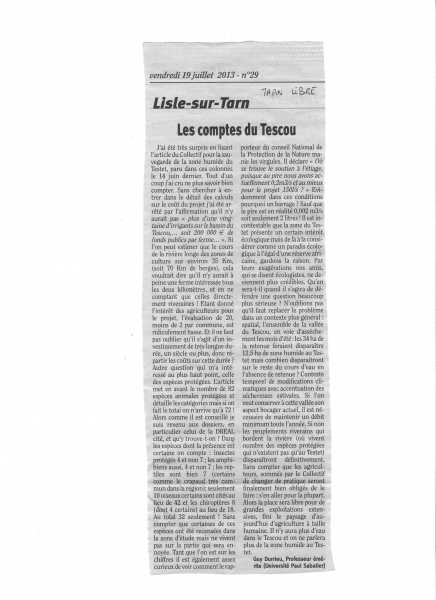 TARN LIBRE : Droit de réponse au texte « Les comptes du Tescou » de Guy Durrieu paru le 19/07/13