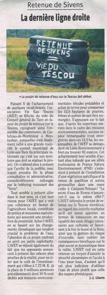 TARN LIBRE : Droit de réponse à l’article du 31/05/13 de l’association Vie Eau Tescou (AVET)