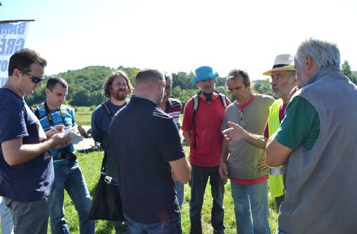 Ce 28 août 2014, la Confédération Paysanne du Tarn a organisé une conférence de presse dans la ferme de Pierre Lacoste, paysan victime du projet de barrage de Sivens. 8 tracteurs, des banderoles et le soleil ont donné encore plus de visibilité à cette action forte de soutien au Collectif pour la sauvegarde de la zone humide du Testet. Après la conférence de presse, les paysans ont effectué une opération escargot sur la N999 jusqu'à l'autre entrée de la zone humide.