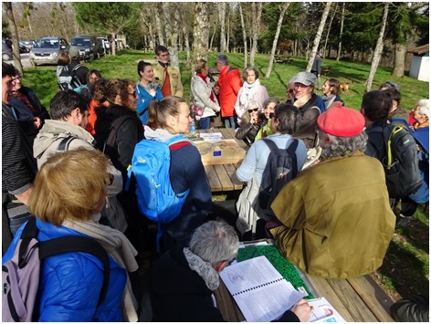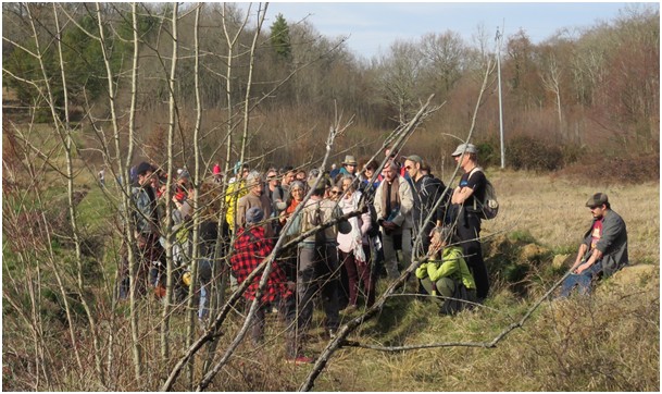 Pendant ce temps un autre groupe, se rendait par le sentier de randonnée Lisle/ Tarn – Sivens dans la vallée du Tescou, découvrir la zone humide du Testet fortement dégradée par les travaux du projet de barrage de Sivens aujourd’hui abandonné.