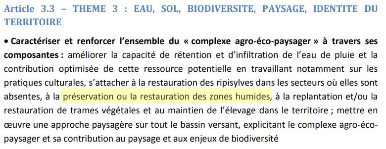 Cette présentation a permis de montrer l'importance de préserver les zones humides en général et, plus particulièrement celle du Testet, comme le prévoit la charte du projet de territoire du Tescou (téléchargement en cliquant ici - extrait ci-dessous).