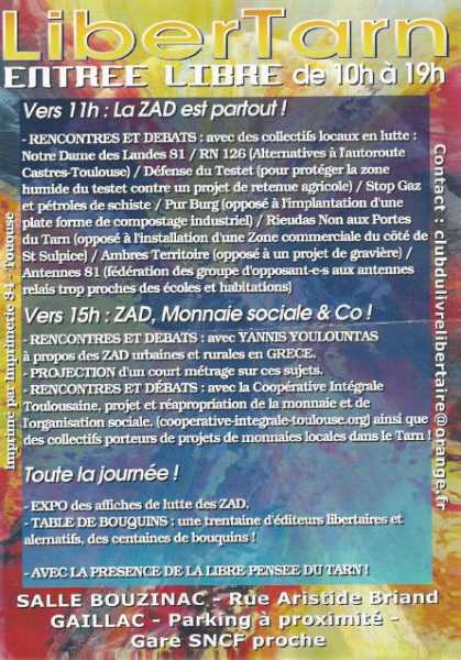 Le Collectif sera présent à Libertarn, le salon du livre libertaire et des alternatives, à Gaillac (salle Bouzinac, rue Aristine Briand). Ouvert toute la journée (10 h à 19h).