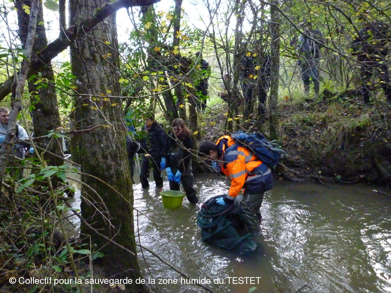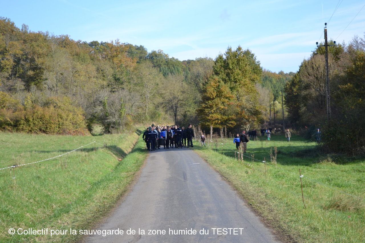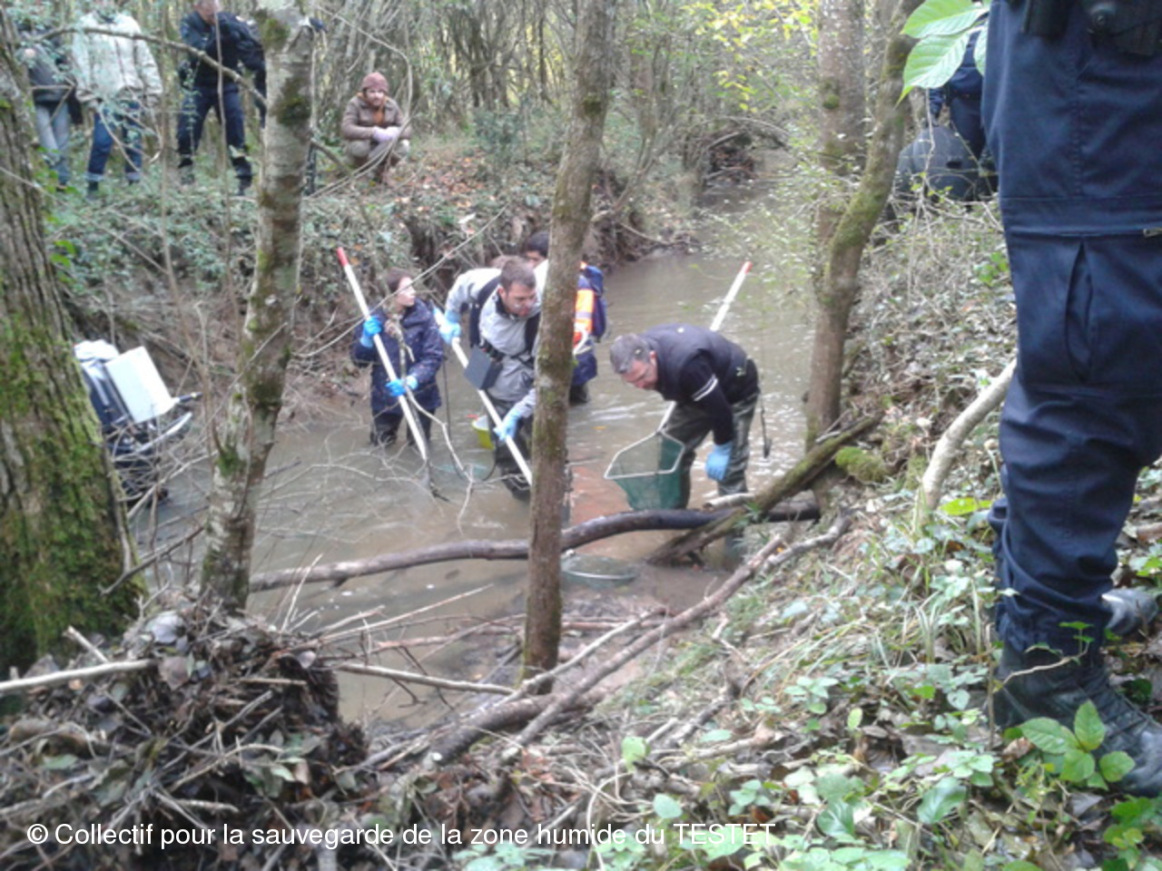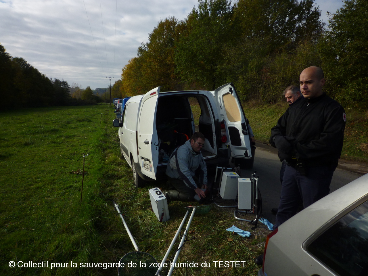 Un peu avant 12h, les naturalistes et leur essaim de gendarmes ont ramené leurs prises à leur voiture. Encadrés par plusieurs voitures de gendarmerie, les naturalistes sont allés relâcher les poissons capturés en amont du site du chantier.