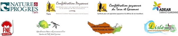 Ce communiqué était signé des organisations signataires suivantes : Confédération Paysanne Tarn, Confédération Paysanne Tarn et Garonne, Nature & Progrès Tarn, Adear Tarn et Garonne, FNE 82, UPNET, Collectif Testet, Lisle Environnement